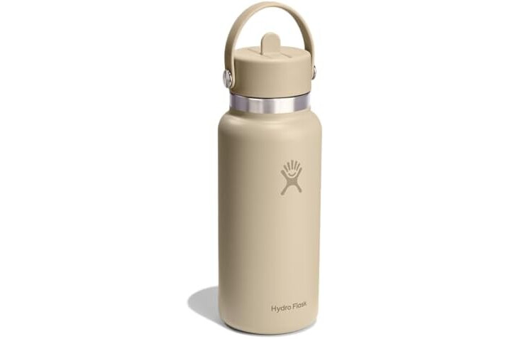 32 OZ OAT TAN BOTTLE: Flip it and sip it with the Hydro Flask Wide Mouth insulated water bottle with closeable straw cap. With a comfortable, flexible handle, the leakproof straw cap is easy to open and close. Double-wall insulation keeps drinks cold up to 24 hours.