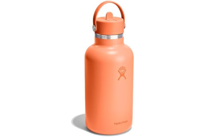 64 OZ NECTAR ORANGE BOTTLE: Flip it and sip it with the Hydro Flask Wide Mouth insulated water bottle with closeable straw cap. With a comfortable, flexible handle, the leakproof straw cap is easy to open and close, for on-demand hydration. Double-wall insulation keeps drinks cold up to 24 hours.