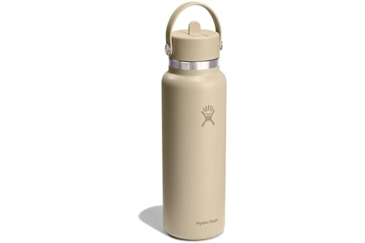 40 OZ OAT TAN BOTTLE: Flip it and sip it with the Hydro Flask Wide Mouth insulated water bottle with closeable straw cap. With a comfortable, flexible handle, the leakproof straw cap is easy to open and close, for on-demand hydration. Double-wall insulation keeps drinks cold up to 24 hours.
