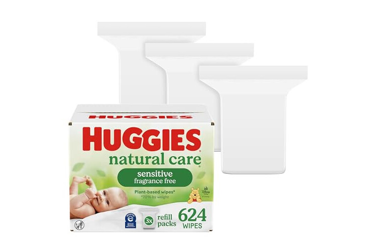 • 3 refill packs of 208 Huggies Natural Care Sensitive Baby Wipes, Unscented (624 wipes total), packaging may vary