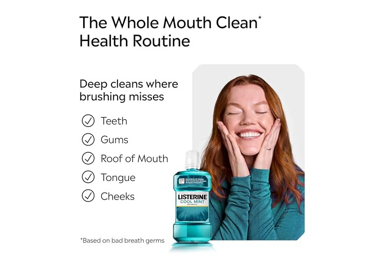 An ADA-accepted antiseptic mouthwash, Listerine Cool Mint Antiseptic Mouthwash is 99% naturally derived* and offers 24-hour bad breath, plaque and gingivitis germ protection when twice daily use