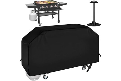 Waterproof Design: Constructed with 600D heavy-duty oxford polyester and water-resistant PVC coating, our griddle cover offers exceptional protection against various weather conditions such as snow, hail, rain, and wind. With this cover, your griddle will be safeguarded all year round. Additionally, we have included a 12" support pole that props up the cover in the middle, preventing it from touching the oily griddle top and minimizing water pooling and debris collection