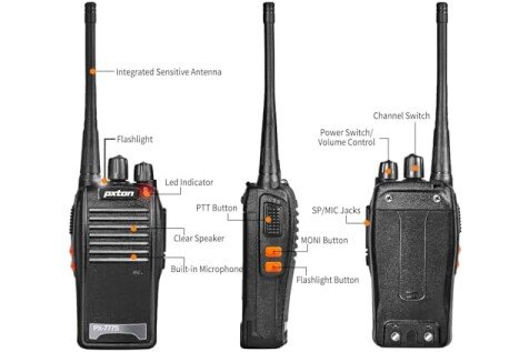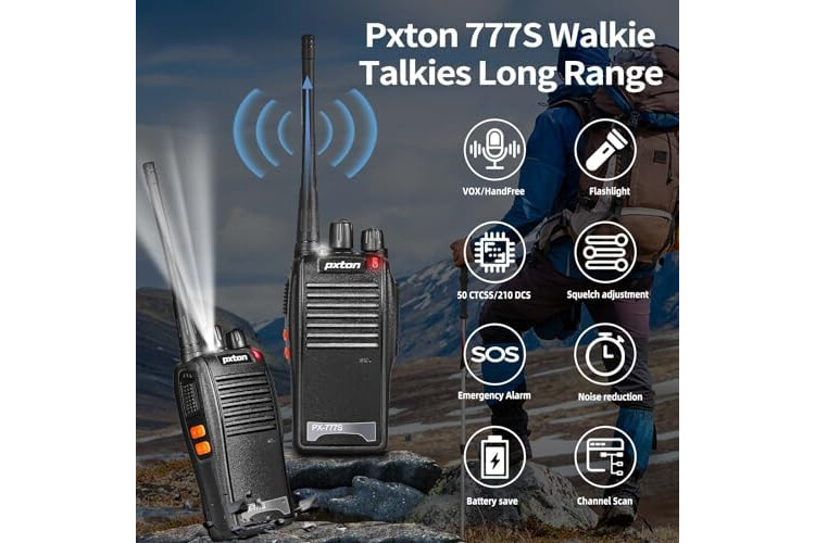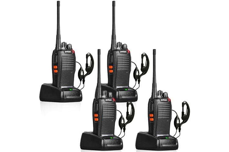 pxton 777S walkie talkies Long Range for Adults Rechargeable with Earpieces and Li-ion Battery,Two Way radios has VOX/TOT/Emergency Alarm/Battery Low Alert/Flashlight/Scan Function(4 Pack)