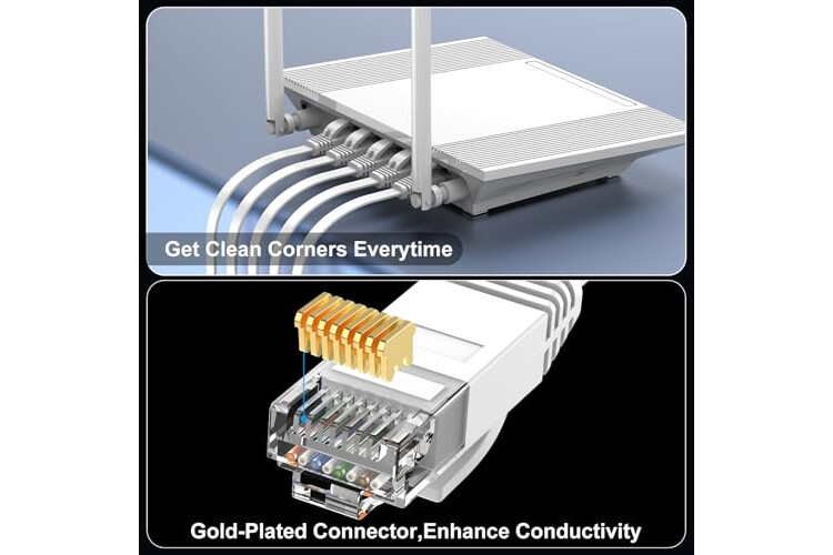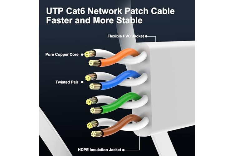 Premium Quality Construction: Made from 100% bare copper wire, UTP Ethernet cable features RJ45 connectors with gold-plated contacts, molded strain-relief boots, and a snag-less design to ensure secure connections and minimize signal interference