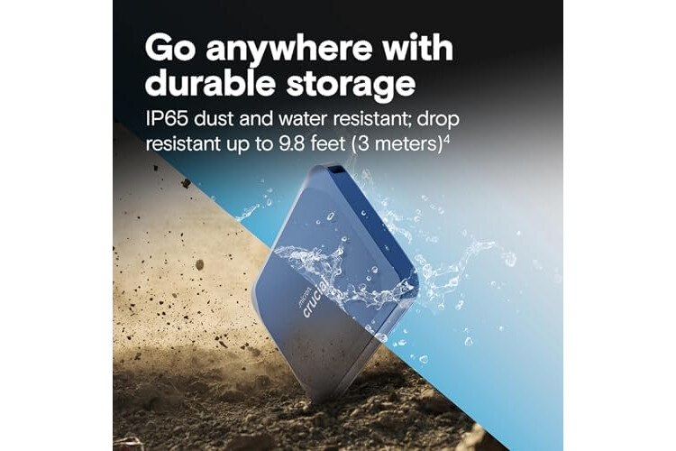 Built to Last: Perfect for travel and all types of weather with IP65 dust and water resistance. Plus, it's drop resistant up to 9.8 ft (3 metres). This portable drive is designed for durability and reliability wherever you go