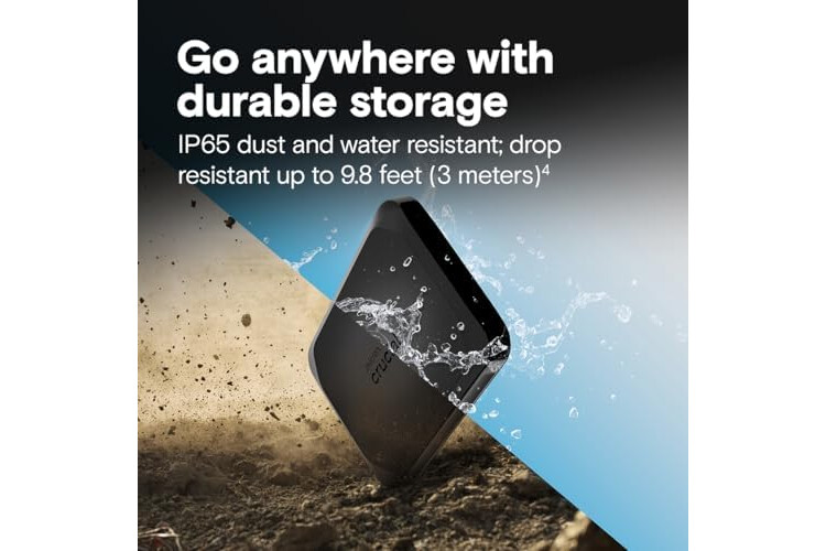Built to Last: Perfect for travel and all types of weather with IP65 dust and water resistance. Plus, it's drop resistant up to 9.8 ft (3 meters). This portable drive is designed for durability and reliability wherever you go