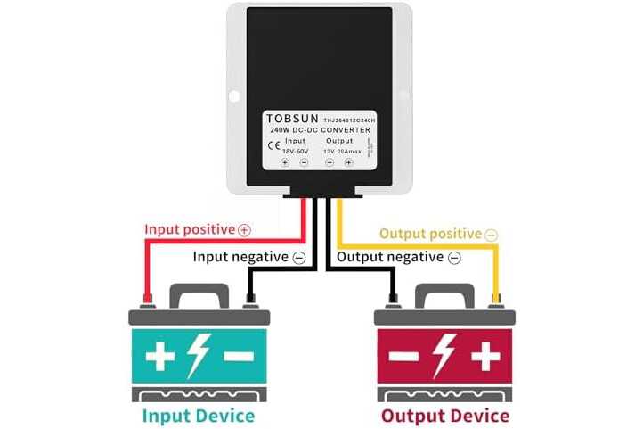 Input Voltage Range: 18V to 60V(Rated Voltage: 18V/20V/24V/36V/48V) ; Output: DC 12V 20A 240W