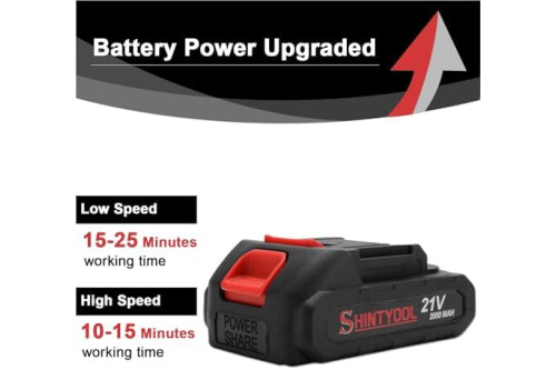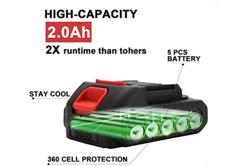★【21 Volt Lithium Battery 】Battery voltage: 21v, capacity: 2000ah, type: lithium ion, made of 5 pcs quality lithium ion battery,can provide stable capacity and output.
