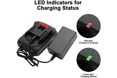21v Lithium Battery - 2.0 Ah Battery with Charger Adapter Led Indicator Compatible with Leaf Blower and Cordless Tiller