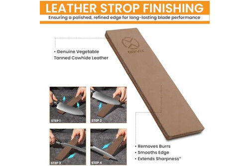 ๐๐๐ ๐๐ญ๐๐๐ฅ๐-๐๐๐ง๐ง๐๐ ๐๐จ๐ฐ๐ก๐ข๐๐ ๐๐๐๐ญ๐ก๐๐ซ ๐๐ญ๐ซ๐จ๐ฉ: The roller knife sharpener kit includes a premium leather strop made from genuine vegetable-tanned cowhide, essential for removing burrs and giving your blades a mirror-polished, razor-sharp finish after sharpening.