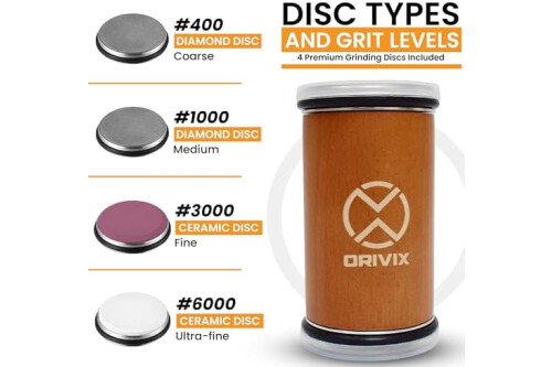 ๐๐ง๐๐ฅ๐ฎ๐๐๐ฌ ๐ ๐๐ซ๐ข๐ญ ๐๐ข๐ฌ๐๐ฌ โ ๐๐ข๐๐ฆ๐จ๐ง๐ & ๐๐๐ซ๐๐ฆ๐ข๐: Our rolling sharpener Comes with 1000/400 grit diamond discs for reshaping dull edges and 6000/3000 ceramic discs for refining and polishing. Color-coded for ease: White = 6000 grit, Maroon = 3000 grit.