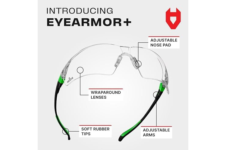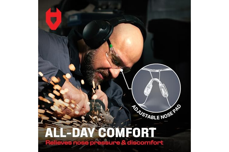 LIGHT, COMFORTABLE AND ADJUSTABLE — These clear eye protection glasses have extendable arms and an adjustable soft nose pad so you always get the perfect fit. They're also armed with non-slip rubber grips so your mens safety glasses stays on.