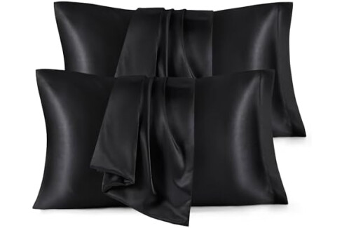 Bedsure Satin Pillowcases Standard Set of 4 - Black Silk Pillow Cases for Hair and Skin 20x26 inches, Satin Pillow Covers 4 Pack with Envelope Closure, Gifts for Women Men