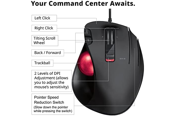 EX-G WIRED TRACKBALL MOUSE: Experience superior craftsmanship with our EX-G (Exact Grip) ergonomic trackball mouse series, designed to minimize wrist and hand stress. Seamlessly enhances productivity while using creative software, office work, gaming, or navigating through websites.