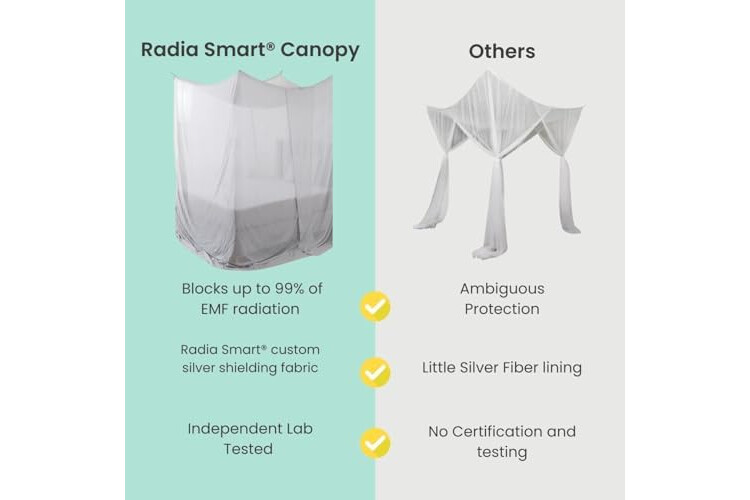 Radia Smart® Radiation Shielding Bed Canopy - Square EMF Protection, Block 5G, Radiation Shielding Sleep