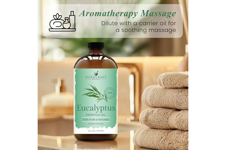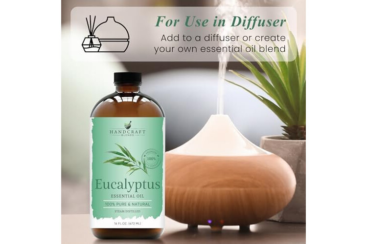 Handcraft Blends Eucalyptus Essential Oil in Glass Bottle – Huge 16 Fl Oz – 100% Pure and Natural – Premium Grade Oil for Diffuser and Aromatherapy, Skin, Massage, Candle and Soap Making Fragrance