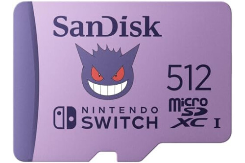 SANDISK 512GB Pokémon Gengar microSDXC Card Licensed for Nintendo-Switch - Made for Nintendo-Switch 1, OLED, and Lite - SDSQXAO-512G-GN6ZK
