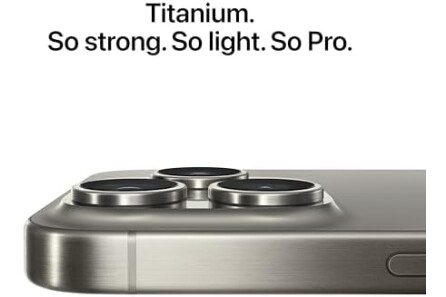 6.7inch Super Retina XDR display. ProMotion technology. Always-On display. Titanium with textured matte glass back. Action button