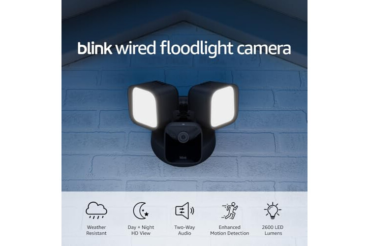 Blink Wired Floodlight Camera - Smart security camera, 2600 lumens, HD live view, enhanced motion detection, built-in siren, Works with Alexa – 1 camera (Black)