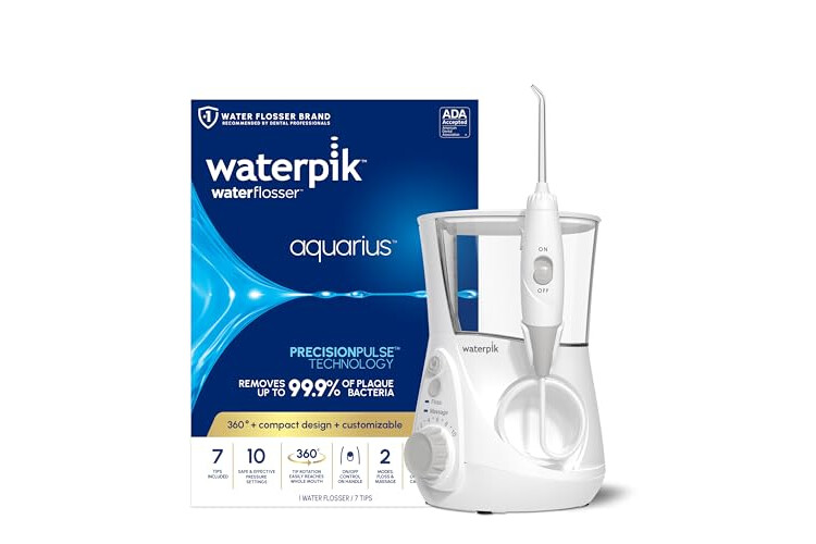 Waterpik Aquarius Water Flosser For Teeth Cleaning, Gums, Braces, Dental Care, Electric Power With 10 Settings, 7 Tips For Multiple Users And Needs, ADA Accepted, White WP-660, Packaging May Vary
