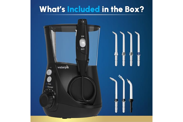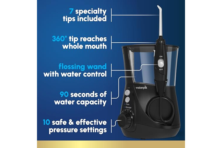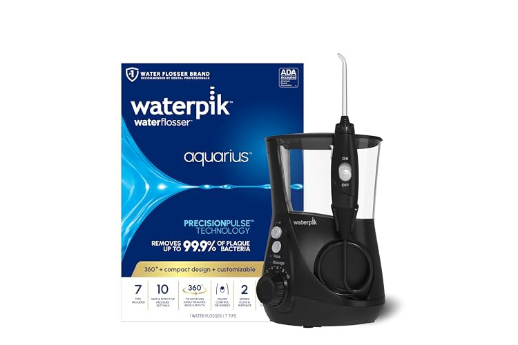 Waterpik Aquarius Water Flosser For Teeth Cleaning, Gums, Braces, Dental Care, Electric Power With 10 Settings, 7 Tips For Multiple Users And Needs, ADA Accepted, Black WP-662, Packaging May Vary