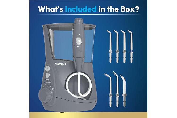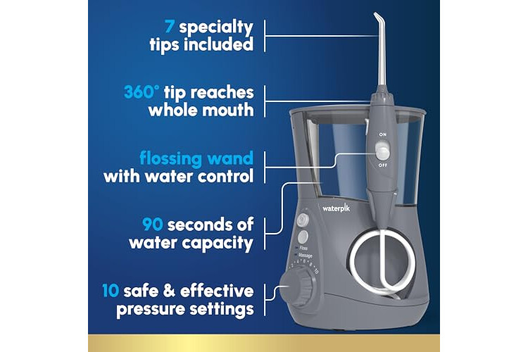 Waterpik Aquarius Water Flosser For Teeth Cleaning, Gums, Braces, Dental Care, Electric Power With 10 Settings, 7 Tips For Multiple Users And Needs, ADA Accepted, Gray WP-667, Packaging May Vary
