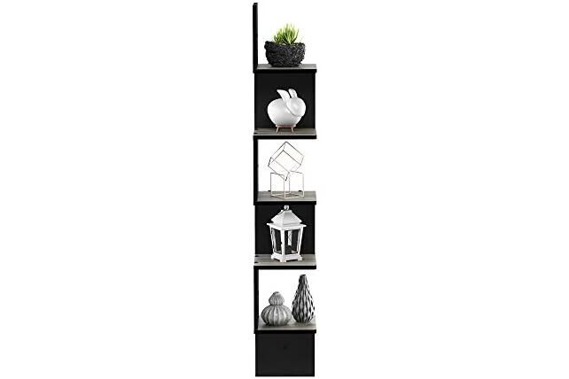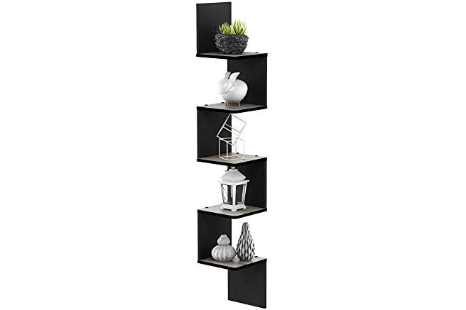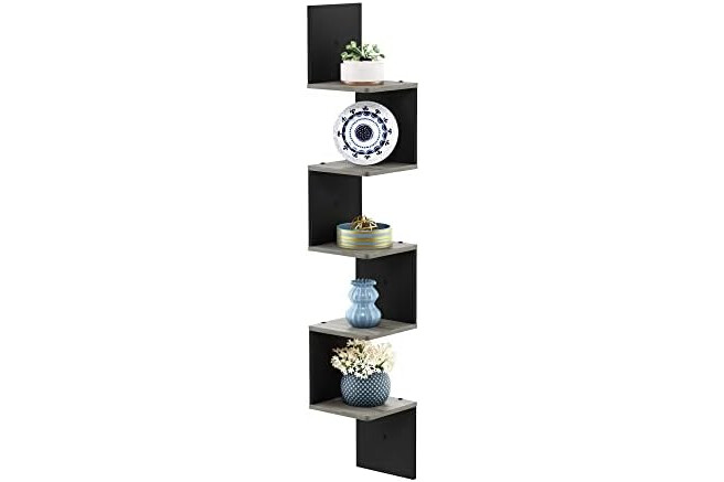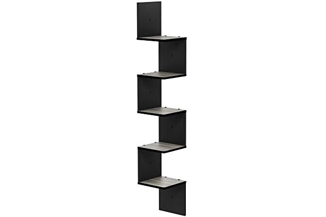 Furinno Rossi Wall Mount Floating Corner Shelf, 5-Tier Square, French Oak Grey/Black