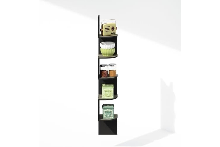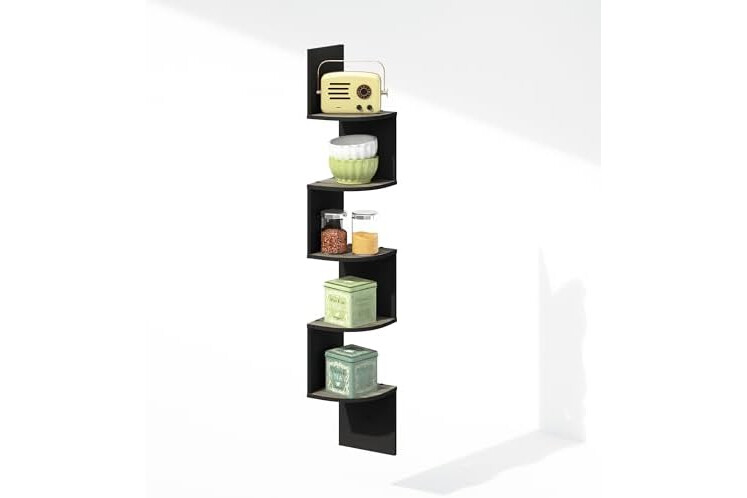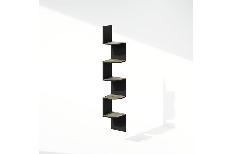 MODERN & SPACE-EFFICIENT DESIGN: This corner shelf showcases a 5-tier zigzag radial shape that mounts directly to the wall, making the corner shelf ideal for living rooms, bedrooms, offices, or dorms while maximizing unused corner areas