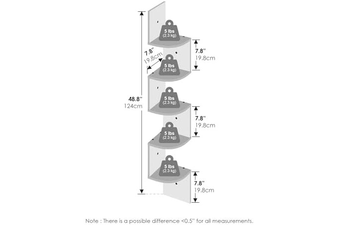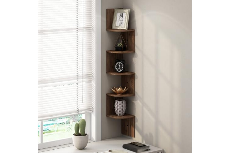 MODERN & SPACE-EFFICIENT DESIGN: This corner shelf showcases a 5-tier zigzag radial shape that mounts directly to the wall, making the corner shelf ideal for living rooms, bedrooms, offices, or dorms while maximizing unused corner areas