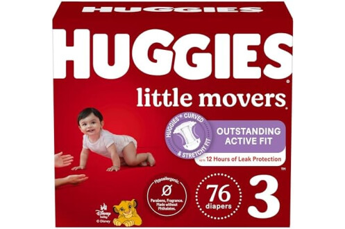 Huggies Size 3 Diapers, Little Movers Baby Diapers, Size 3 (16-28 lbs), 76 Count, Packaging May Vary
