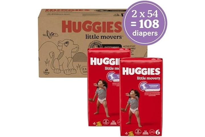 Huggies Size 6 Diapers, Little Movers Baby Diapers, Size 6 (35+ lbs), 108 Count (2 Packs of 54), Packaging May Vary