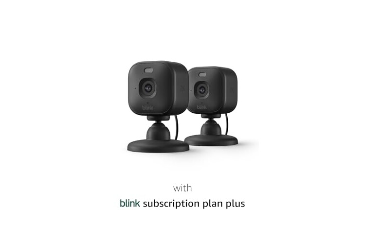 Blink Mini 2K+ (newest model) with 1-Year Subscription – Plug-in Home & Pet Security Camera with 2K video resolution, smart motion detection, works with Alexa – 2 camera (Black)