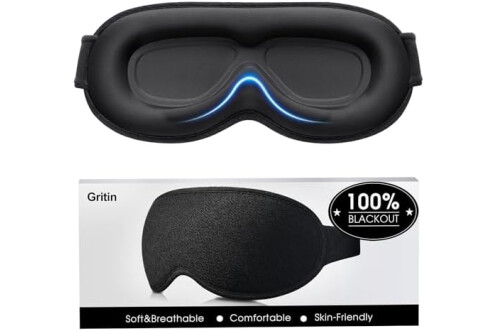 Gritin 100% Blackout Sleep Eye Mask for Women Men, Zero Pressure Sleeping Mask - Ergonomic Design 3D Cutout Eye Movement and Eyelash Friendly Night Blindfold, Ultra Soft Comfortable for Sleeping