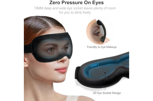 3D and Zero Eye Pressure: The 3D sleep mask deepens at the eye sockets, leaving enough space for your eyes, reducing the friction between eyelids and eyelashes, preventing any irritation to your eyes, and won't cause any stress or discomfort to your eyes