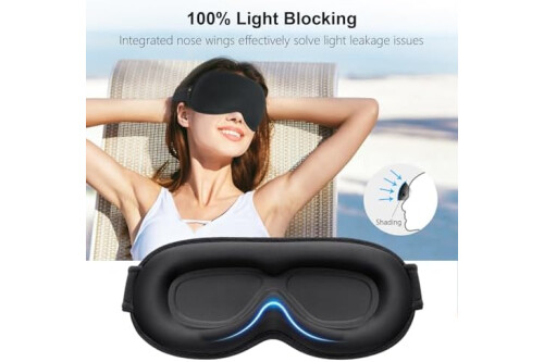 100% Light-Blackout: Adopts a flexible one-piece nose bridge design, the 3D sleep mask fits the contours of your face perfectly, blocking out all light and giving you a completely dark sleeping environment and get a good night's sleep anytime, anywhere
