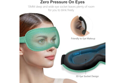 3D and Zero Eye Pressure: The 3D sleep mask deepens at the eye sockets, leaving enough space for your eyes, reducing the friction between eyelids and eyelashes, preventing any irritation to your eyes, and won't cause any stress or discomfort to your eyes