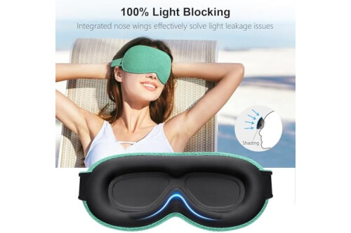 100% Light-Blackout: Adopts a flexible one-piece nose bridge design, the 3D sleep mask fits the contours of your face perfectly, blocking out all light and giving you a completely dark sleeping environment and get a good night's sleep anytime, anywhere