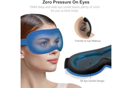 3D and Zero Eye Pressure: The 3D sleep mask deepens at the eye sockets, leaving enough space for your eyes, reducing the friction between eyelids and eyelashes, preventing any irritation to your eyes, and won't cause any stress or discomfort to your eyes