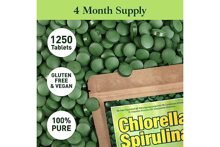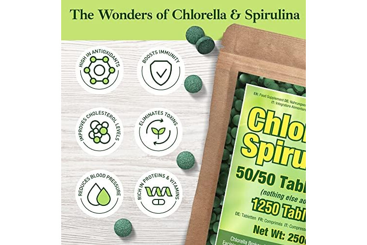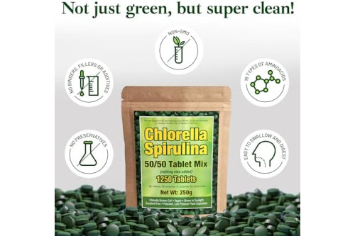 Good Natured Premium Spirulina and Chlorella Capsules 1,250 Tablets, Non-GMO, Vegan Organic Chlorella Tablets, Sunlight Grown, Cracked Cell Wall, High Protein, Heavy Metal Detox