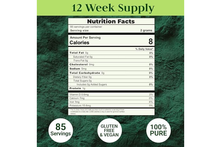 Premium Chlorella Spirulina Powder | 85 SERVINGS | Non-GMO | Sunlight Grown | Deep Green Color | Cracked Cell Wall | Alkalyzing | High Protein | Vegan Capsules | Good Natured