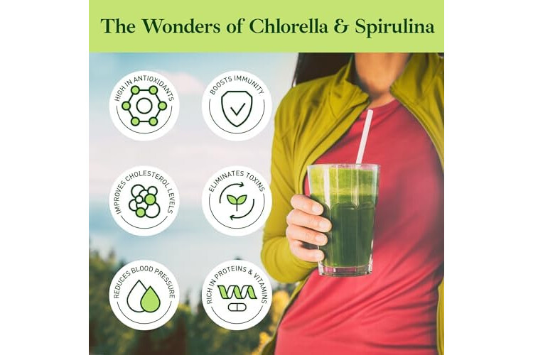 MULTITUDE OF HEALTH BENEFITS - Our chlorella spirulina 50/50 powder mix combines two of the most nutrient-dense superfoods on earth. The vegan spirulina chlorella powder supports your body’s natural detox, energizes you from within, assists digestion, and promotes skin cellular