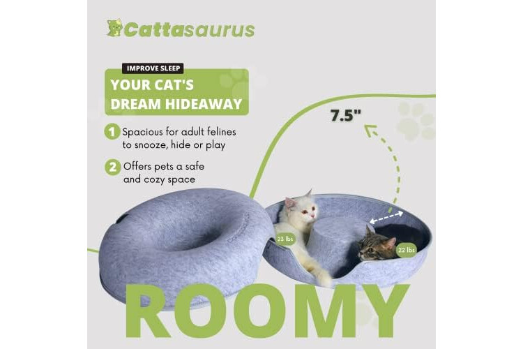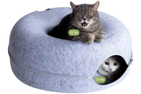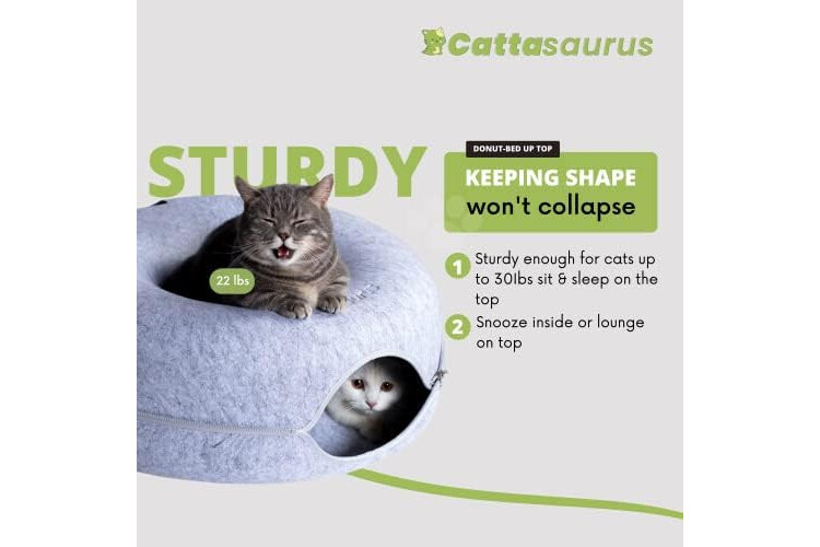 Sturdy, Eco-conscious & Cat-friendly: The Peekaboo Cat Cave is made with durable, non-toxic, and odor-resistant materials, ensuring it maintains its shape and withstands regular use. Its cat tunnel bed, constructed from selected wear-resistant felt material, prevents fluffy ball formation and allows for safe scratching and rubbing. With all-season versatility, the Peekaboo Cat Cave provides a cozy and comfortable donut bed and tunnel, offering year-round enjoyment for your feline companion.