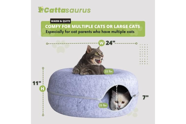 CATTASAURUS Peekaboo Cat Cave for Multiple & Large Cats Up to 30-45 Lbs, Scratch Detachable & Washable Tunnel Bed, Comfy Donut Cat Cave (Light Gray, Large)