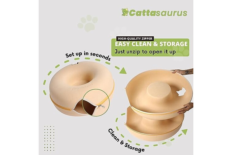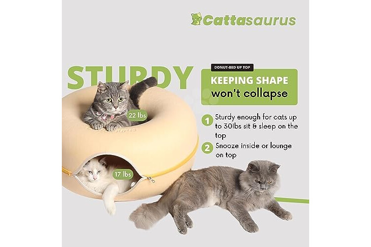 Sturdy, Eco-conscious & Cat-friendly: The Peekaboo Cat Cave is made with durable, non-toxic, and odor-resistant materials, ensuring it maintains its shape and withstands regular use. Its cat tunnel bed, constructed from selected wear-resistant felt material, prevents fluffy ball formation and allows for safe scratching and rubbing. With all-season versatility, the Peekaboo Cat Cave provides a cozy and comfortable donut bed and tunnel, offering year-round enjoyment for your feline companion.