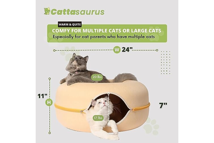 CATTASAURUS Peekaboo Cat Cave for Multiple & Large Cats Up to 30-45 Lbs, Scratch Detachable & Washable Tunnel Bed, Comfy Donut Cat Cave (Pastel Macaron, Large)