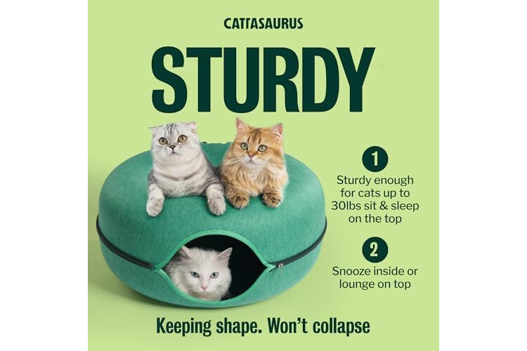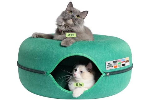 Sturdy, Eco-conscious & Cat-friendly: The Peekaboo Cat Cave is made with durable, non-toxic, and odor-resistant materials, ensuring it maintains its shape and withstands regular use. Its cat tunnel bed, constructed from selected wear-resistant felt material, prevents fluffy ball formation and allows for safe scratching and rubbing. With all-season versatility, the Peekaboo Cat Cave provides a cozy and comfortable donut bed and tunnel, offering year-round enjoyment for your feline companion.