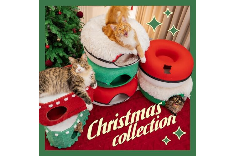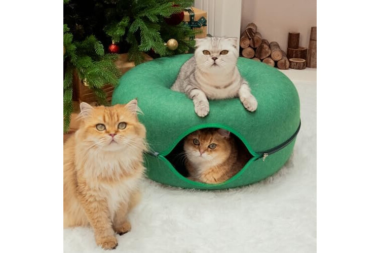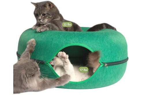 Sturdy, Eco-conscious & Cat-friendly: The Peekaboo Cat Cave is made with durable, non-toxic, and odor-resistant materials, ensuring it maintains its shape and withstands regular use. Its cat tunnel bed, constructed from selected wear-resistant felt material, prevents fluffy ball formation and allows for safe scratching and rubbing. With all-season versatility, the Peekaboo Cat Cave provides a cozy and comfortable donut bed and tunnel, offering year-round enjoyment for your feline companion.