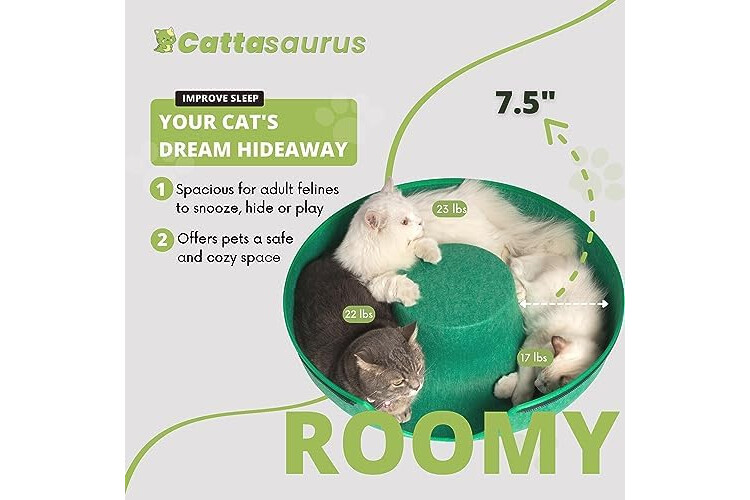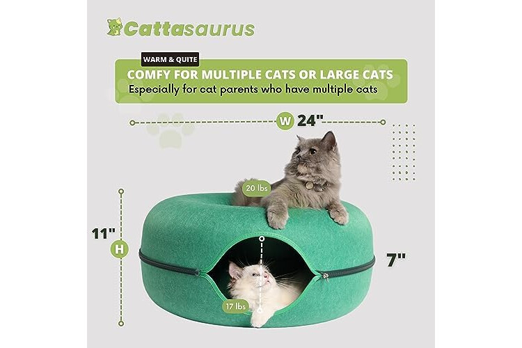 CATTASAURUS Peekaboo Cat Cave for Multiple & Large Cats Up to 30-45 Lbs, Scratch Detachable & Washable Tunnel Bed, Comfy Donut Cat Cave (Forest Green, Large)