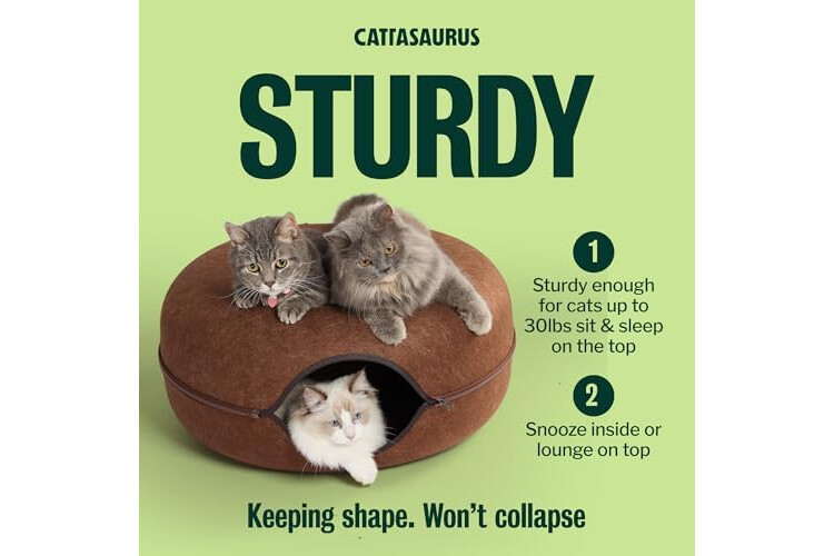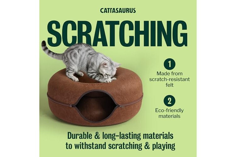 Sturdy, Eco-conscious & Cat-friendly: The Peekaboo Cat Cave is made with durable, non-toxic, and odor-resistant materials, ensuring it maintains its shape and withstands regular use. Its cat tunnel bed, constructed from selected wear-resistant felt material, prevents fluffy ball formation and allows for safe scratching and rubbing. With all-season versatility, the Peekaboo Cat Cave provides a cozy and comfortable donut bed and tunnel, offering year-round enjoyment for your feline companion.
