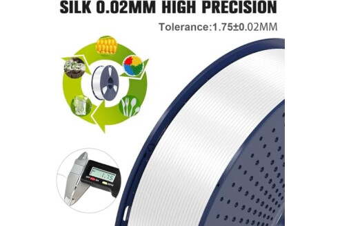 ?Dimensional Accuracy & Consistency? advanced CCD diameter measuring and self-adaptive control system in the manufacturing guarantee these PLA Silk filaments of 1.75 mm diameter, dimensional accuracy + / - 0.02 mm; 1kg spool (2.2lbs)